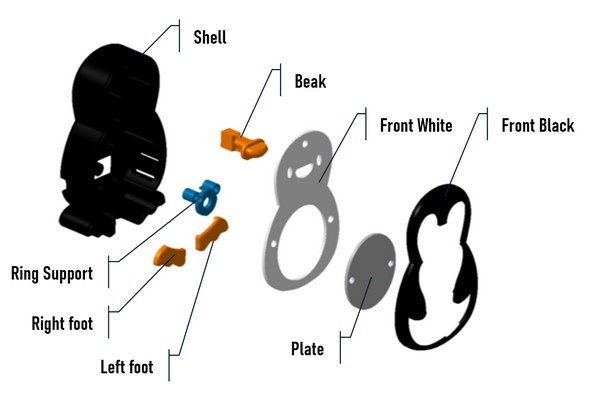 All of Jasper's mechanical parts are made of PLA using 3D printing from the provided STL files.