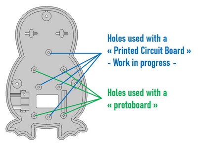 The "shell" part is designed to be used with a protoboard or a PCB: